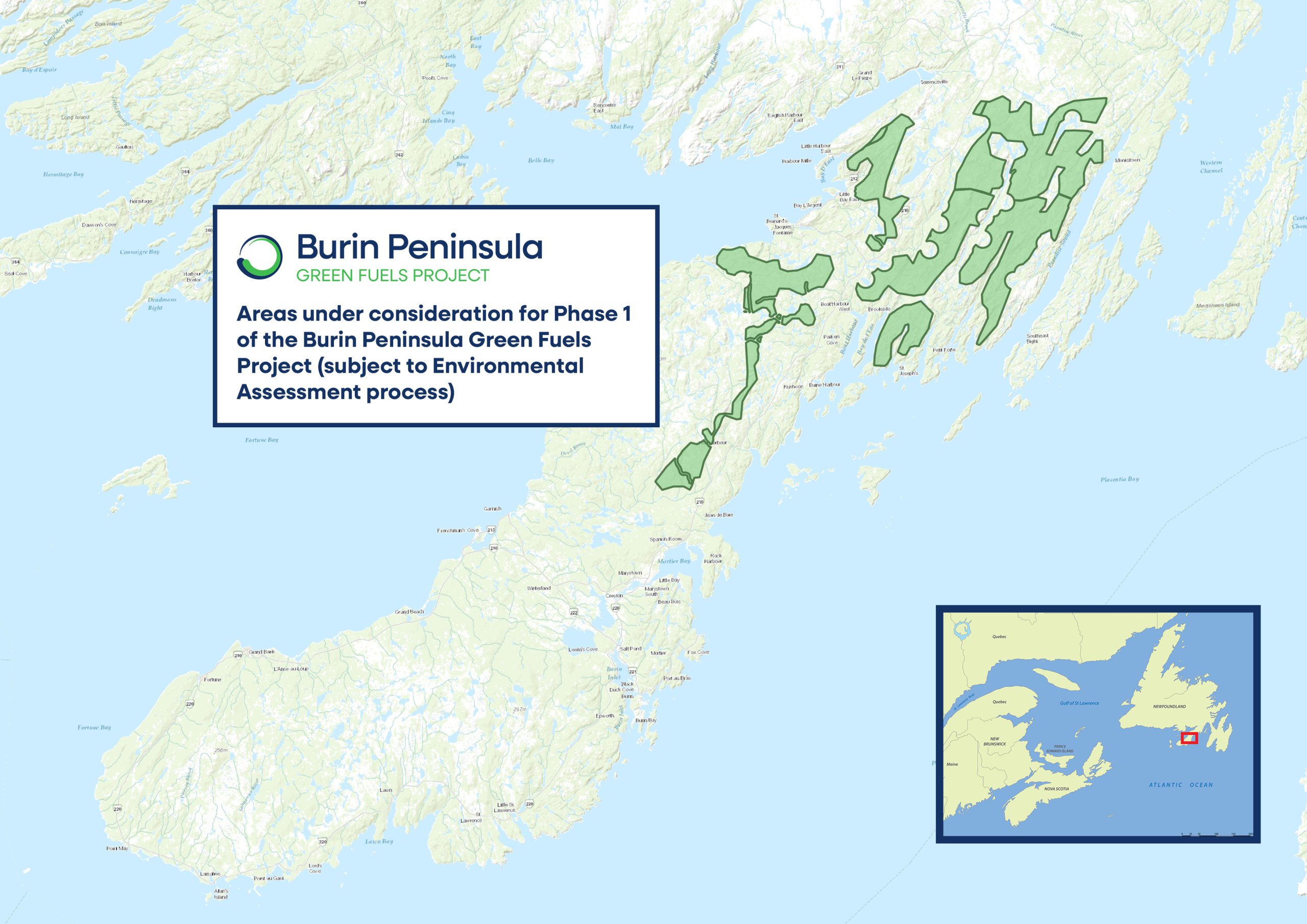The Burin Peninsula Green Fuels Project will only be permitted to proceed to construction once it receives a full Environmental Assessment Release from the Provincial Government of Newfoundland and Labrador.