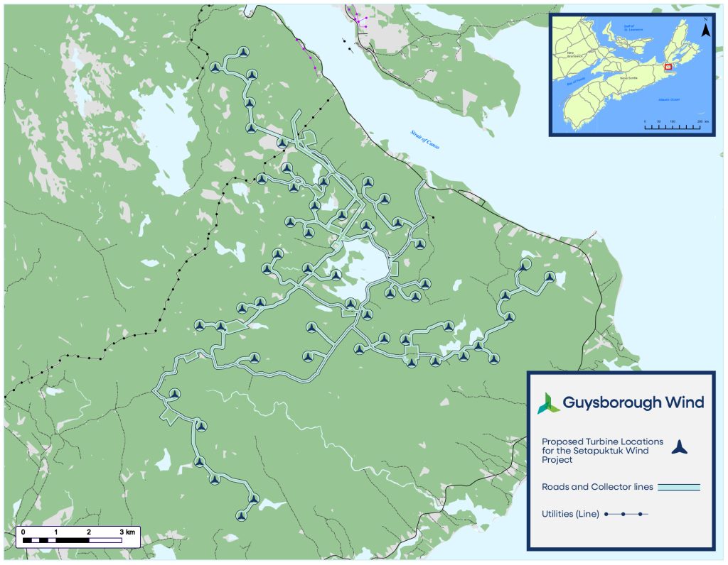 The projects include three new large-scale wind farms: Setapuktuk Wind Project (formerly Wind Farm 1), Wind Farm 2, and Wind Farm 3. Setapuktuk (Set-Tuh-Puck-Took) is the Mi’kmaq word for ‘Guysborough’.